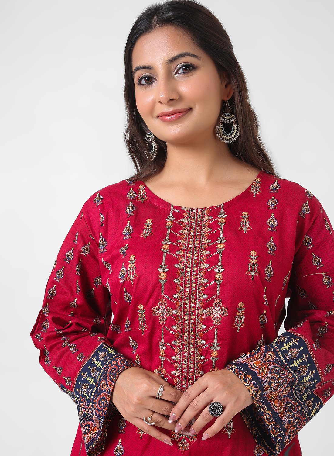 Be the first to review “Embroidered Wine‑Red Cotton Suit Set For Women”