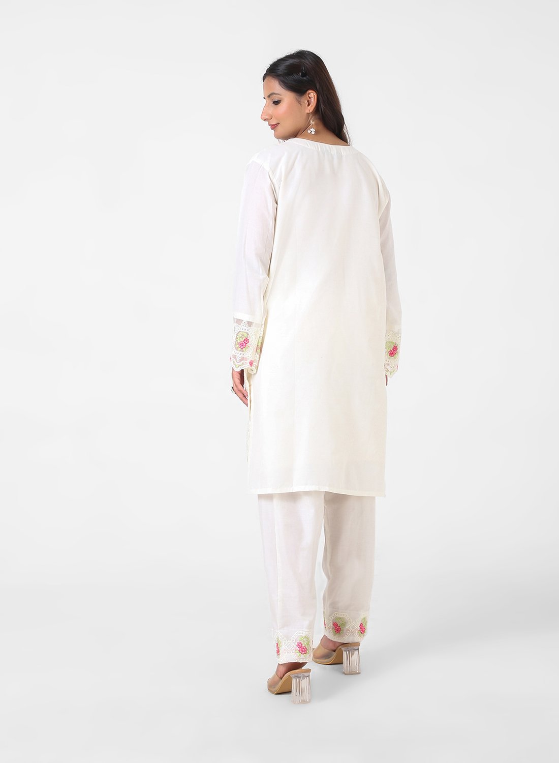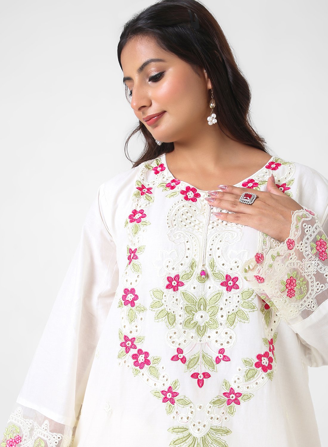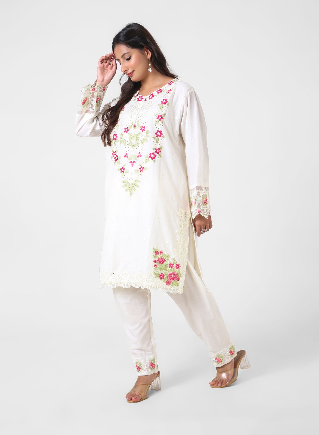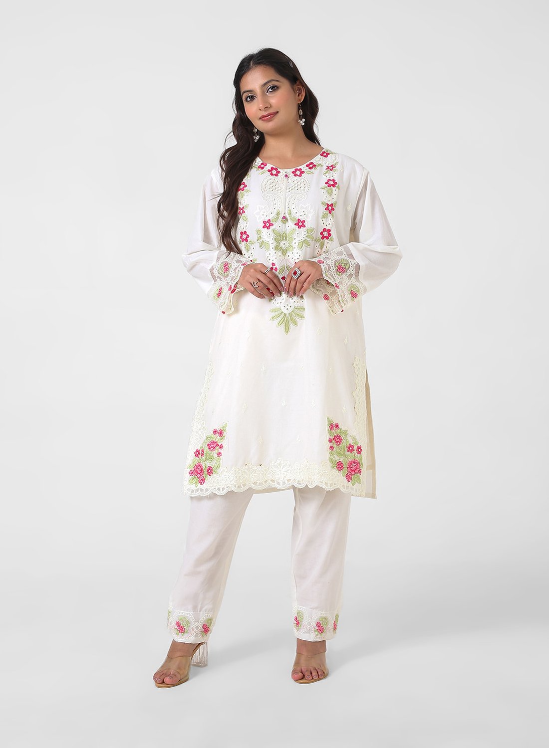 Be the first to review “Ivory White Embroidered Cotton Suit Set For Women”